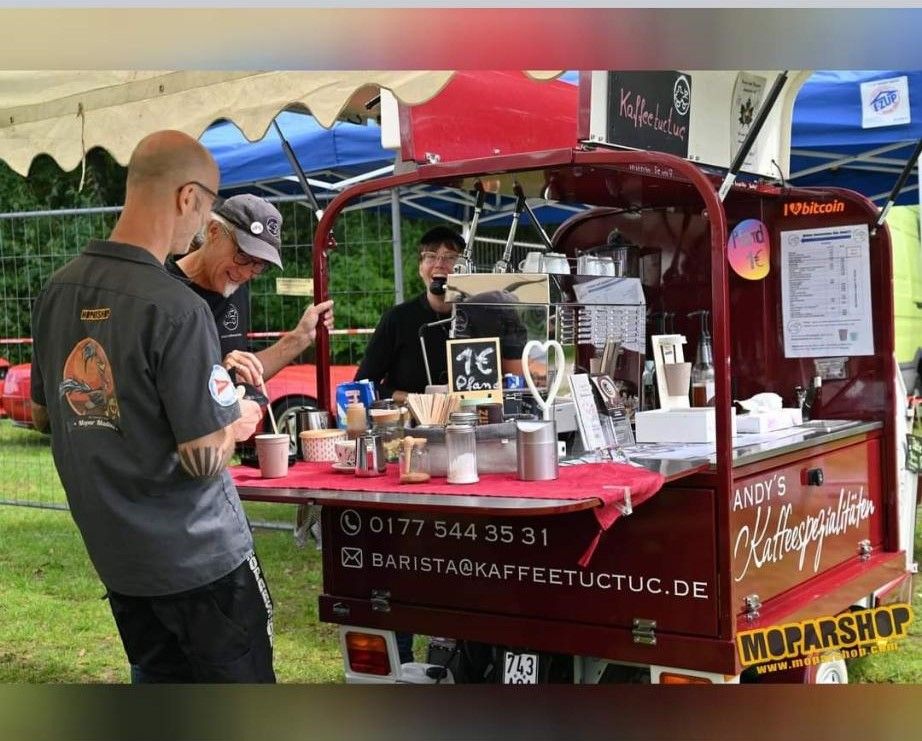 Buchen Sie das KaffeeTucTuc. Die mobile Kaffeebar im Retrodesign.